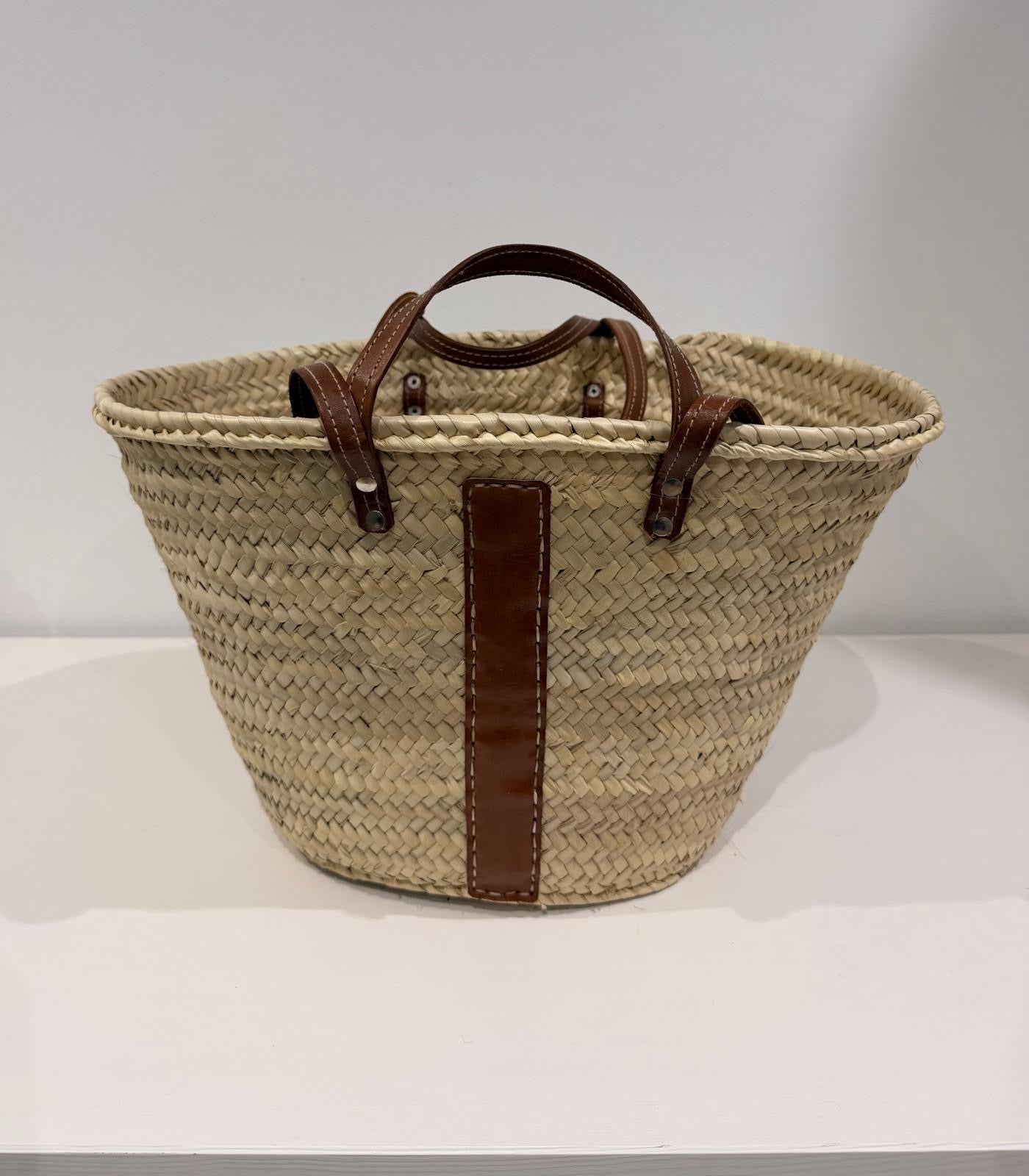 Capazo con asa pequeña y grande de palma natural con detalle en cuero.