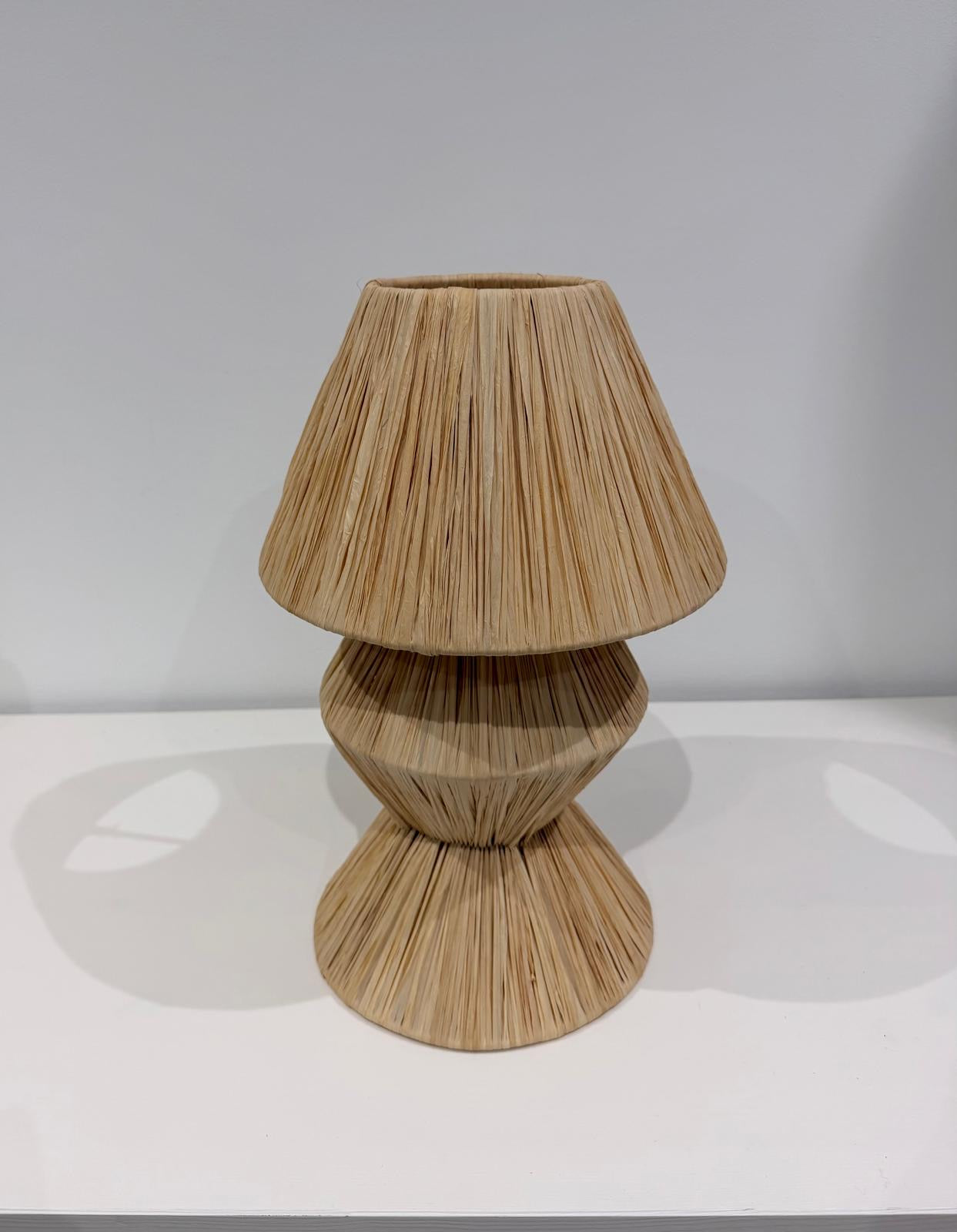 Pieza artesanal hecha de rafia. Aporta una luz cálida y un encanto artesanal a cualquier espacio